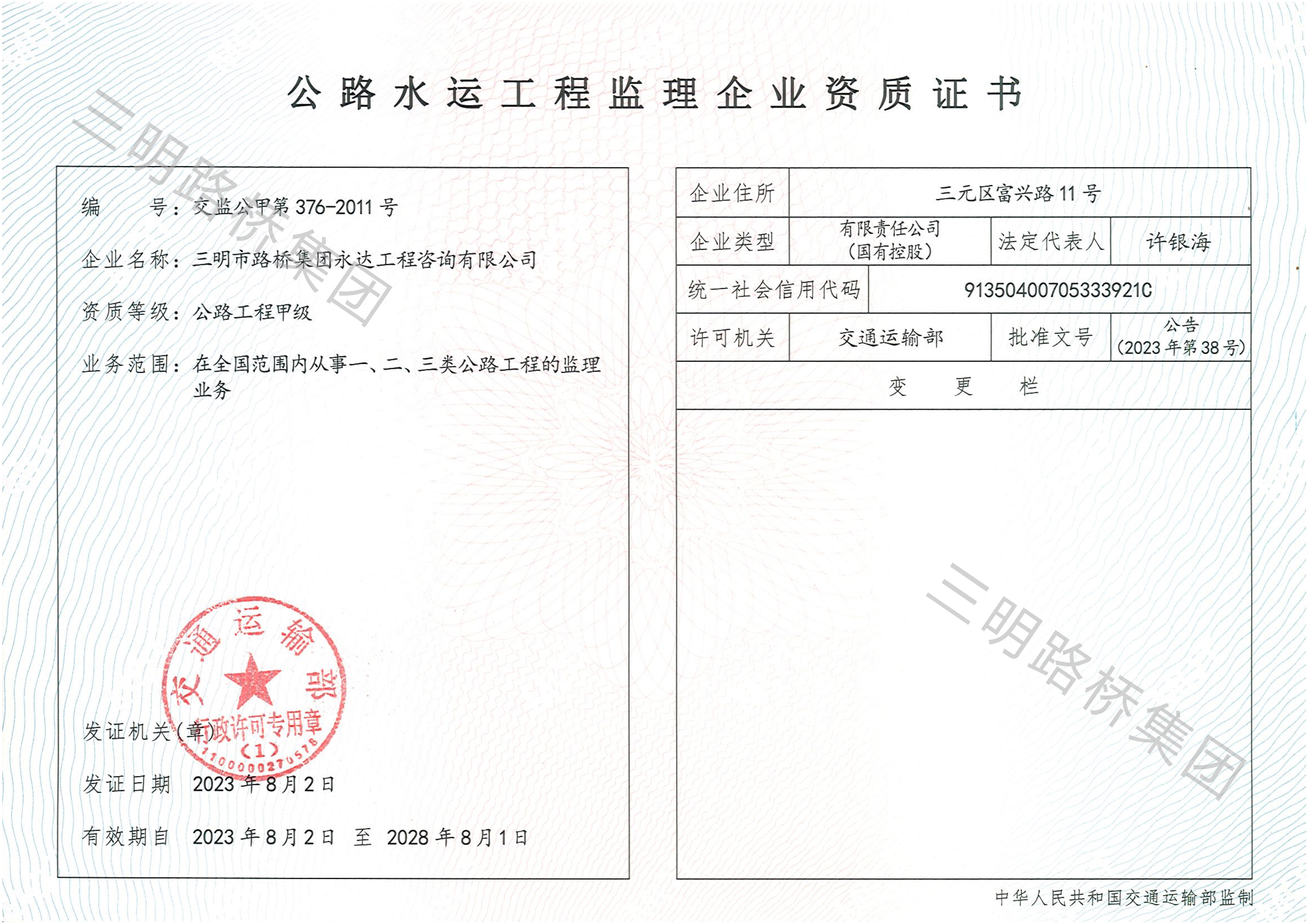 路基路面養護甲級資質、橋梁養護甲級資質、隧道養護甲級資質、交通安全設施養護資質