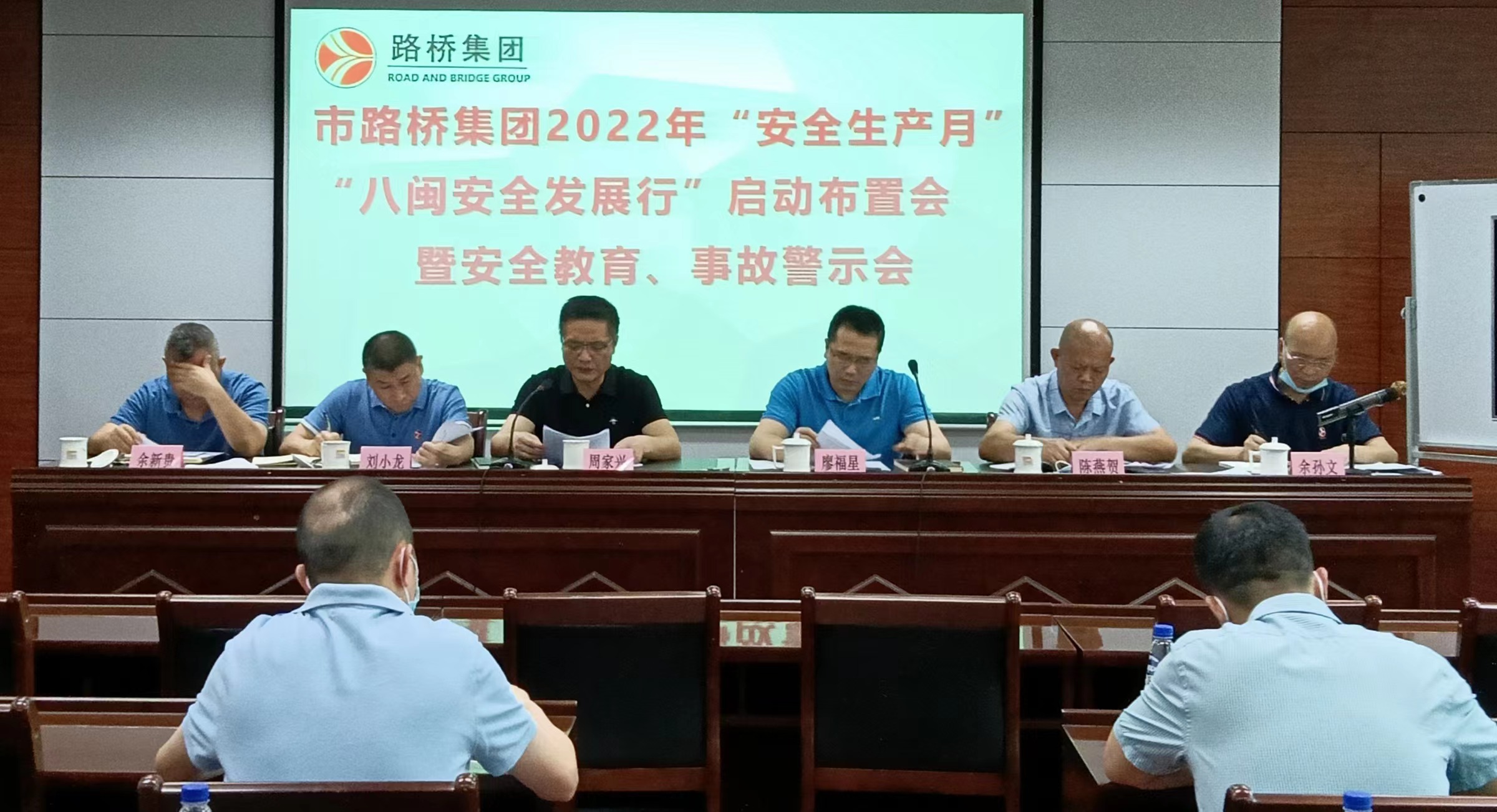 為切實做好第21個全國“安全生產月”活動,6月8日,市路橋集團組織召開2022年度“安全生產月”“八閩安全發展行”暨安全教育事故警示會,集團公司領導、安委會全體成員、各權屬公司及在建項目相關人員參加會議。
