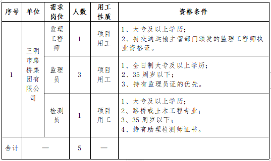(一)公告。招聘崗位、人數(shù)、任職資格等信息在 “三明市路橋集團(tuán)”官網(wǎng)(m.weifangyoubang.com)“一覽英才網(wǎng)”官網(wǎng)向社會統(tǒng)一公告。