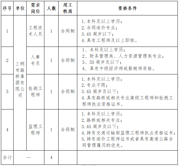 (一)公告。招聘崗位、人數、任職資格等信息在 “三明市路橋集團”官網(m.weifangyoubang.com)、眾聯人才招聘網(www.zlrczp.com)、“三明海峽人才網”向社會統一公告。